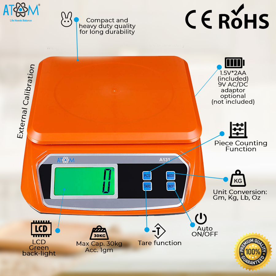 - Weighing pan size 20cm x 25cm