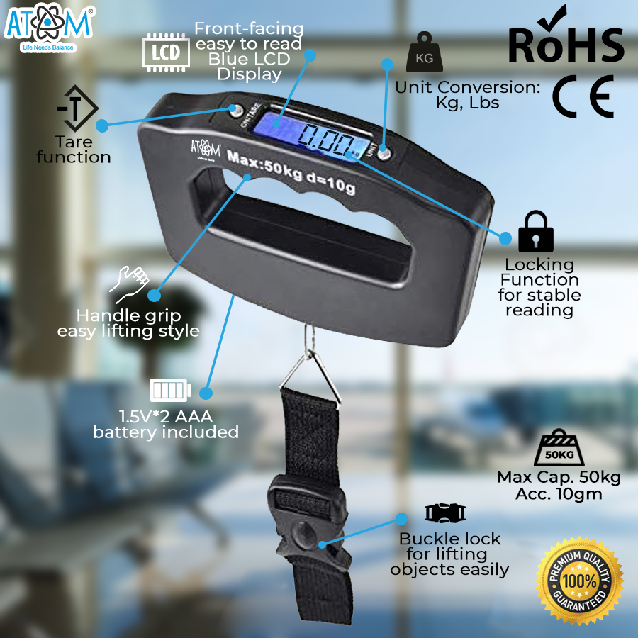 - Tare Function to make display zero Locking function for a stable reading